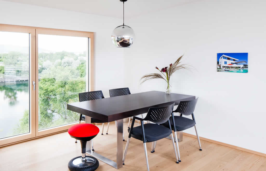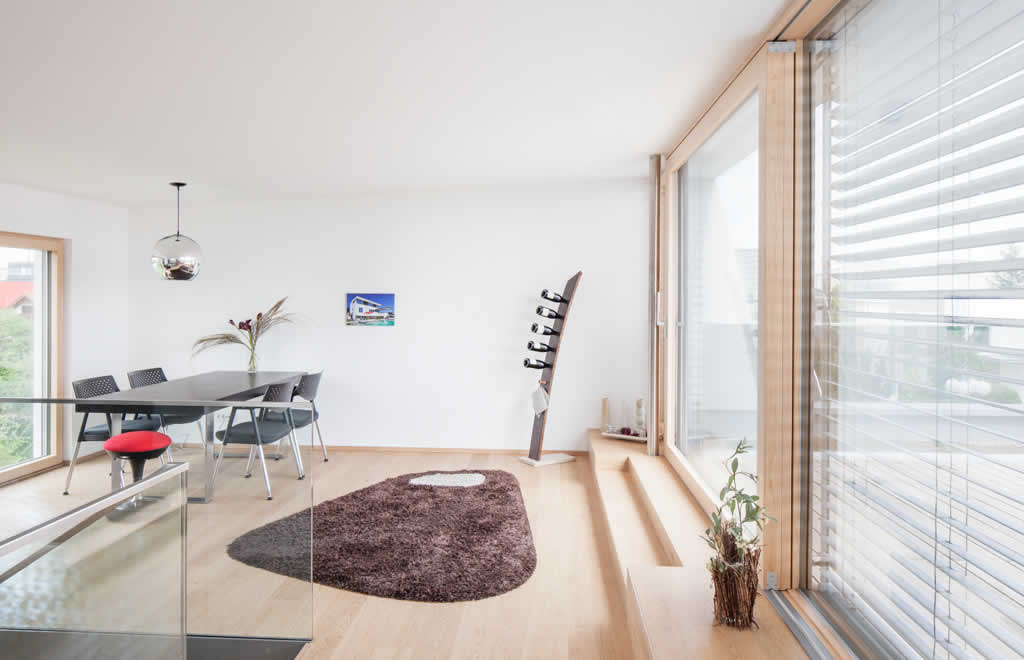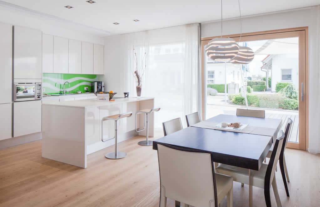 Unter dem Motto „Leben ist Veränderung“ entwickelte Genböck seine neue Hauslinie BE FREE. Durch ein neuartiges Raum- und Technikkonzept passt sich dieses Haus den sich im Laufe der Zeit ändernden Bedürfnissen seiner Bewohner an. In der Grundversion besteht das BE FREE-Haus aus einem modernen Kubus. Wird mehr Platz benötigt, kann das Haus ohne große Umbauten sowohl vertikal als auch horizontal erweitert werden. Das Modell in der Blauen Lagune bietet 2 ½ Geschosse und bildet einen architektonischen Eye-Catcher. Auch im Innenbereich ist es äußerst flexibel: Das Erdgeschoss ist durchgehend offen gestaltet und barrierefrei; bei Bedarf kann eine Einliegerwohnung eingezogen werden. Die Haus- und Gebäudetechnik ist bereits in der Grundvariante für diese Veränderungen gerüstet.