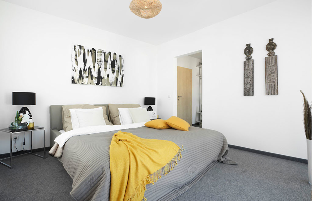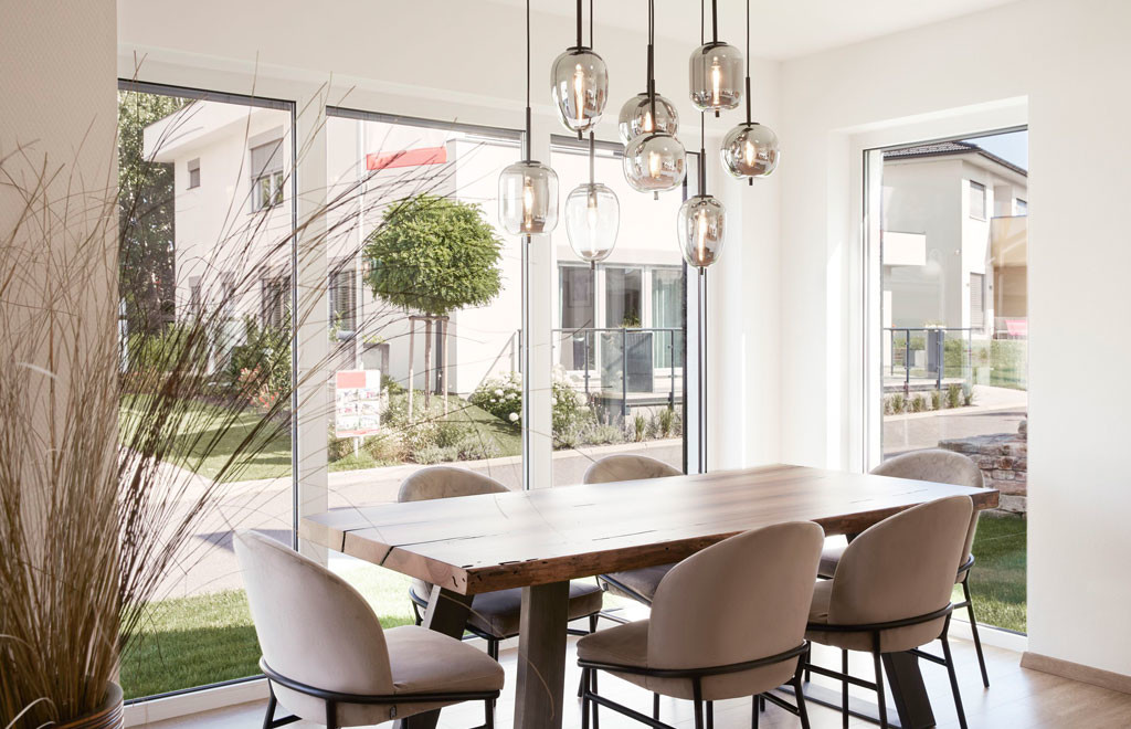 Das Genera 150 von Haas liegt genau im Trend: Dieses Musterhaus zeichnet sich durch klare Linienführung, Flachdach und angeschlossenen Carport aus. Großzügiges und luftiges Wohnen bietet das Erdgeschoß, wo im Erker ein schöner Essplatz integriert ist. Ein weiteres Zimmer auf der gleichen Ebene sowie ein kleines Duschbad ist ideal für Gäste, kann natürlich auch als Arbeitszimmer genutzt werden. Im Obergeschoß sind drei Schlafzimmer (eines davon mit Schrankraum und Terrasse), das Familienbad und ein getrenntes WC untergebracht.