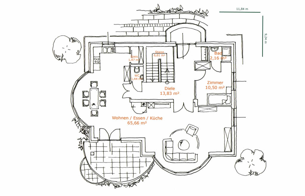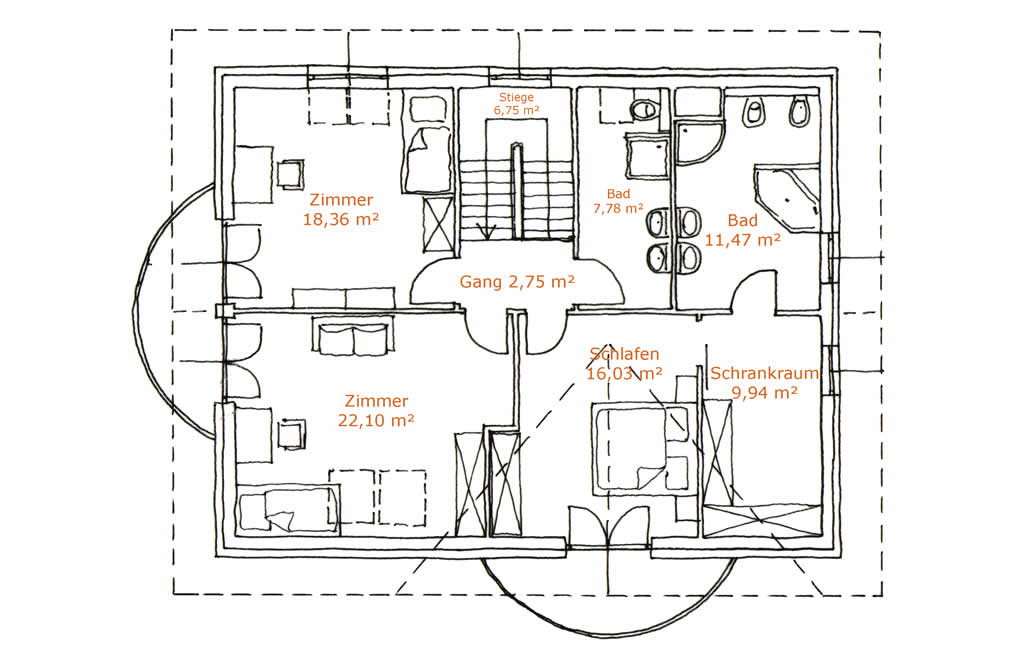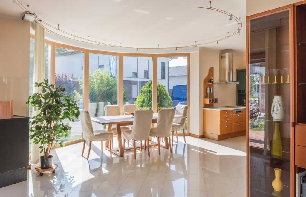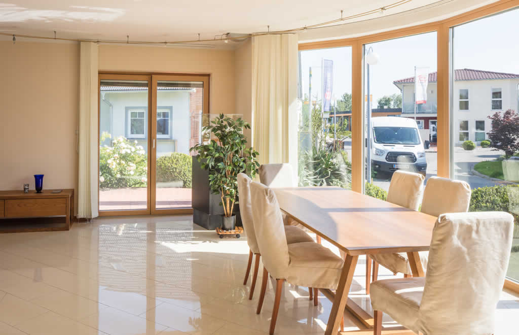 Das Musterhaus La Casa von X.HOMES besticht nicht nur durch sein repräsentatives Äußeres, sondern auch durch das perfekt geplante Innenleben. Die beiden Runderker lassen extrem viel Licht und Sonne ins Haus. Das großzügig angelegte Wohnzimmer ist mit der integrierten Küche das Zentrum des Geschehens, ein zusätzliches Zimmer auf dieser Ebene ergänzt das Raumprogramm. Im Obergeschoß ist mit drei Schlafzimmern und der Möglichkeit von zwei Bädern ausreichend Platz für eine große Familie.